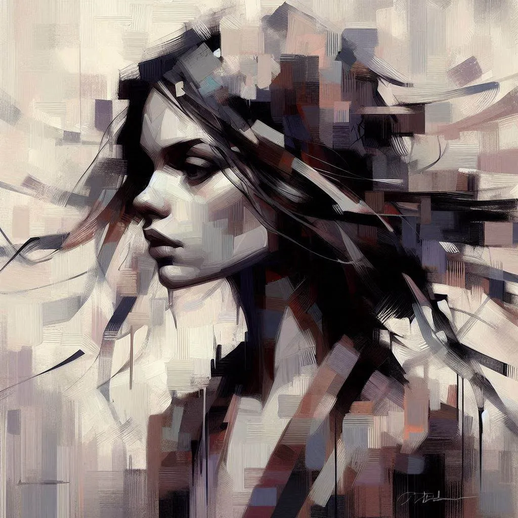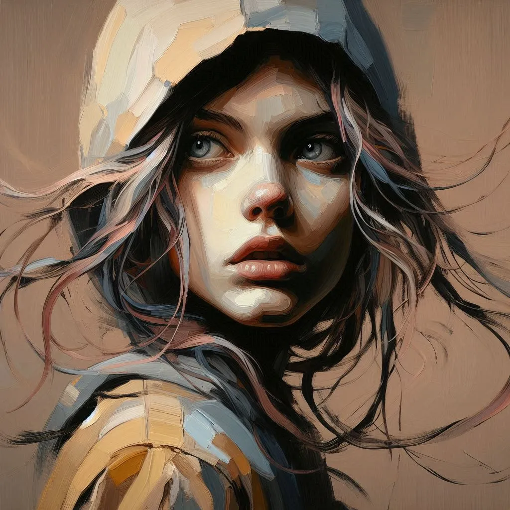 painting in Ruben Ireland style of unprepossessing and unlovely alternative girl, everyday, loose clothes, dynamic pose, detailed